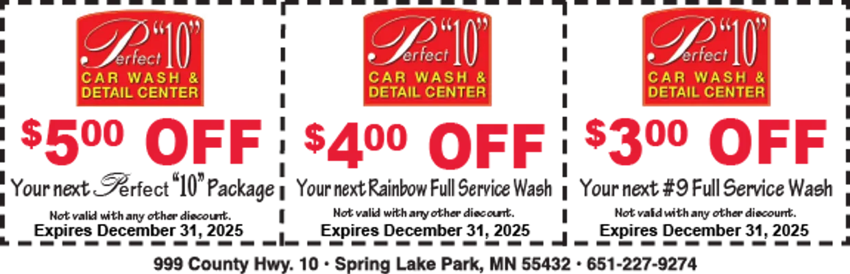 At Perfect 10 Car Wash & Detail Center, there’s always a way to save!